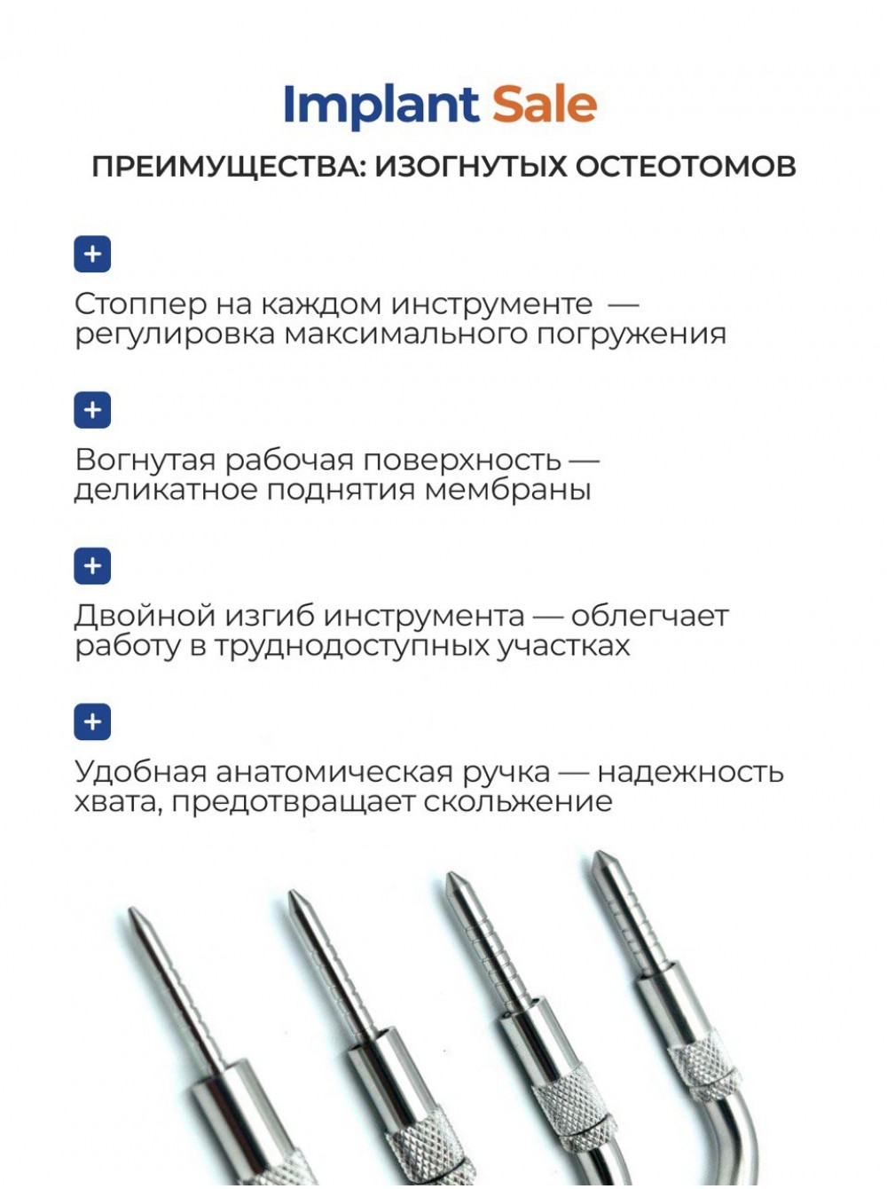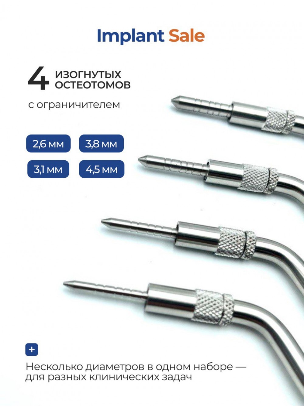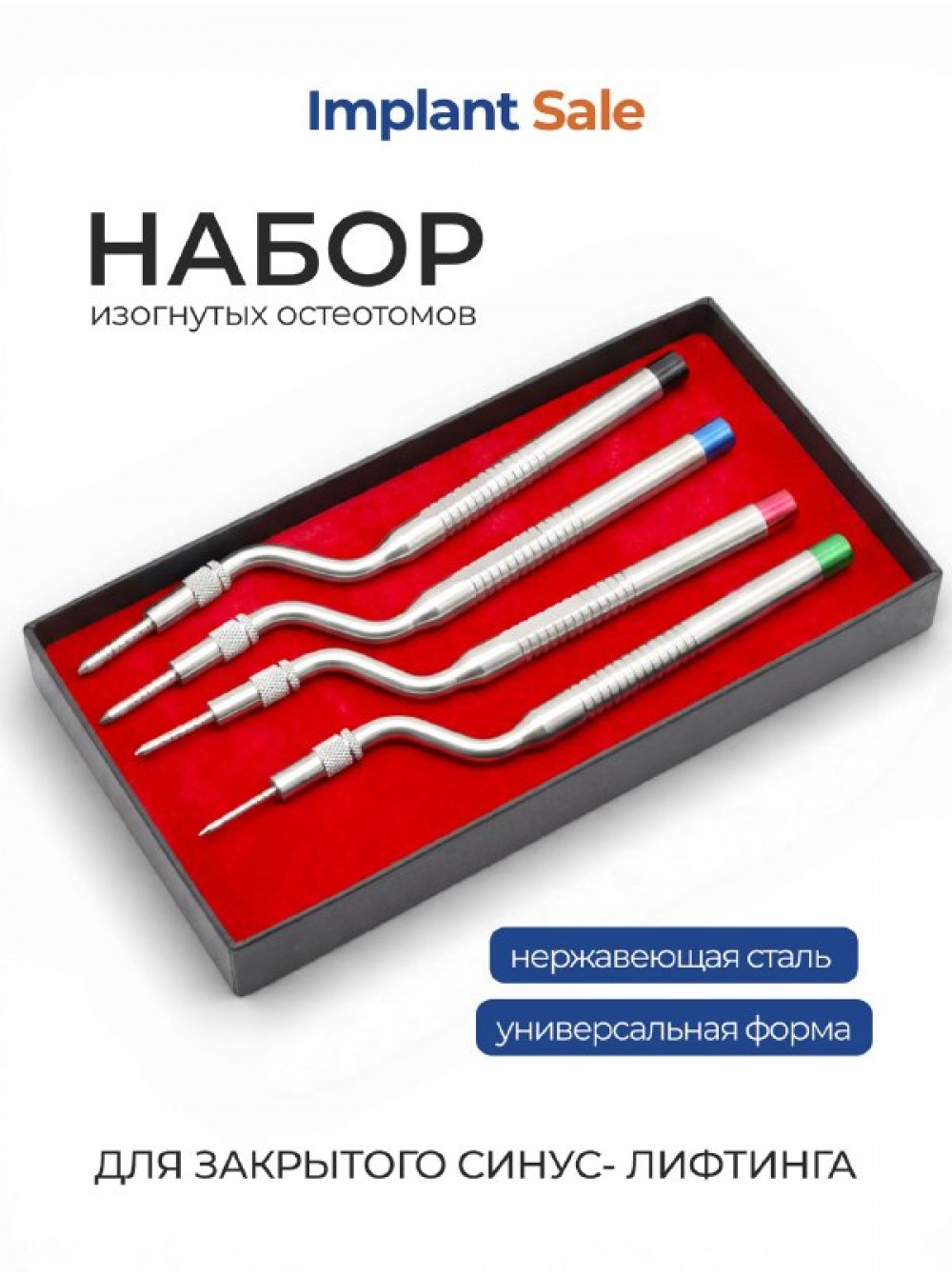 Набор из 4 изогнутых остеотомов с ограничителем для закрытого синус-лифтинга